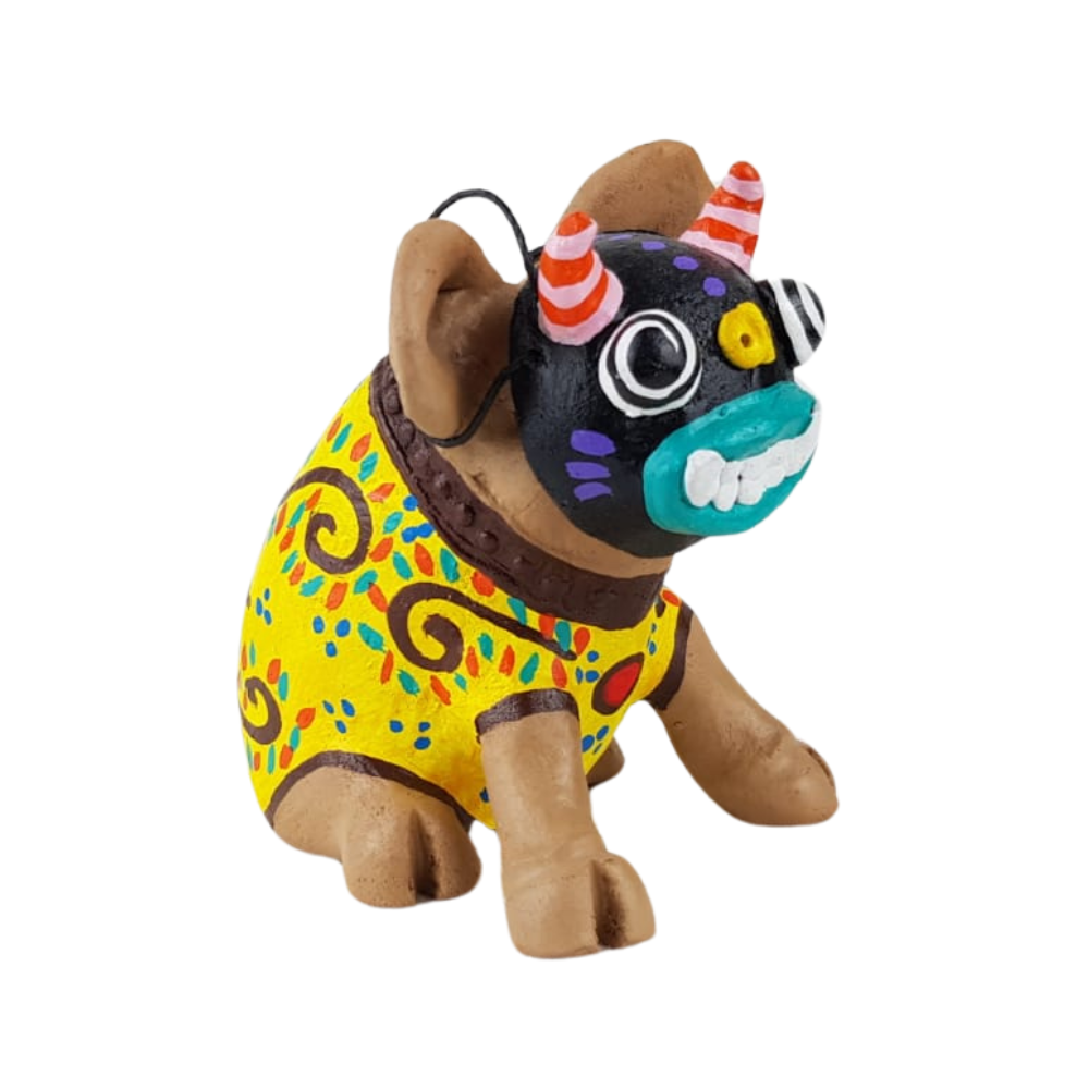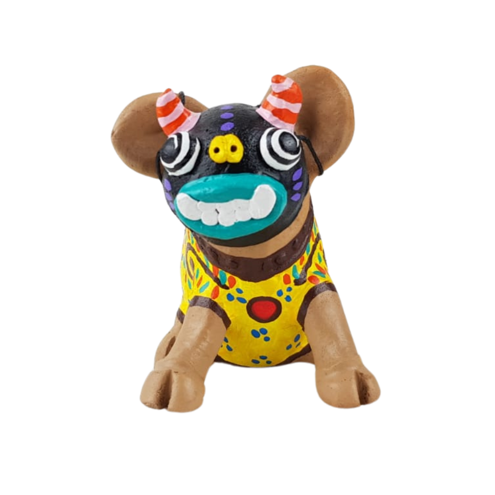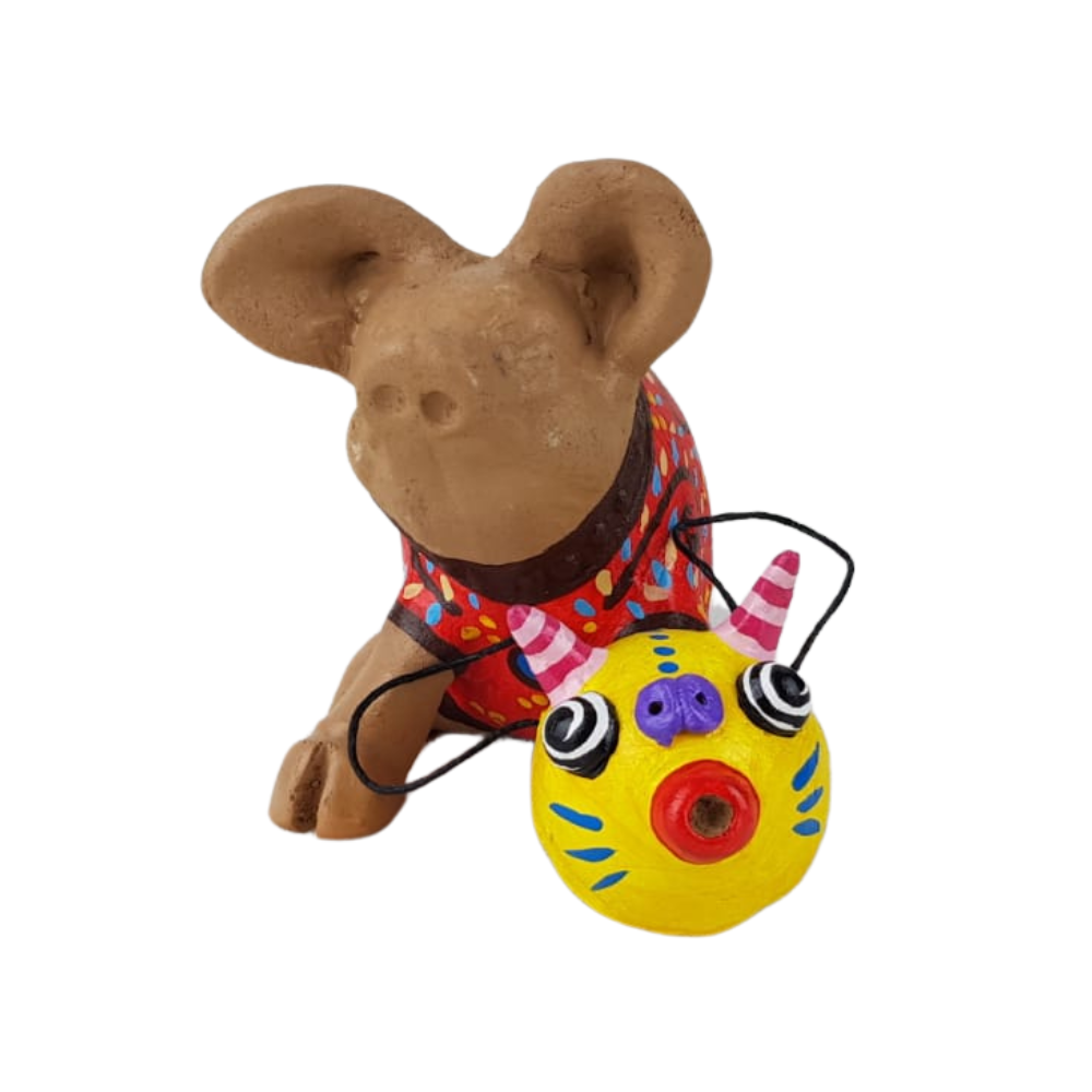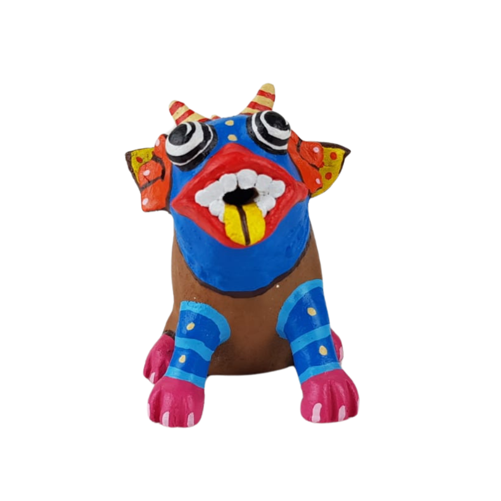 Esta artesanía mexicana es realizada por el maestro alfarero Cesar Lucano, empleando la técnica de barro policromado frío y combinando elementos tradicionales con innovación.
