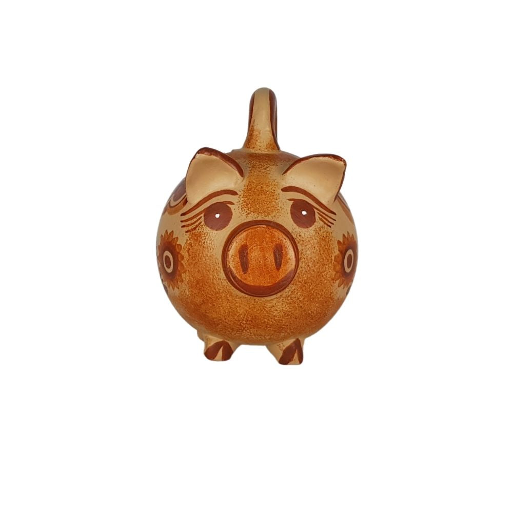 Adorable alcancía en forma de cerdito elaborada en Tonalá Jalisco con la técnica de barro canelo.