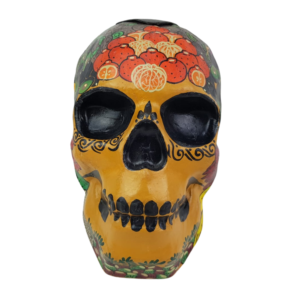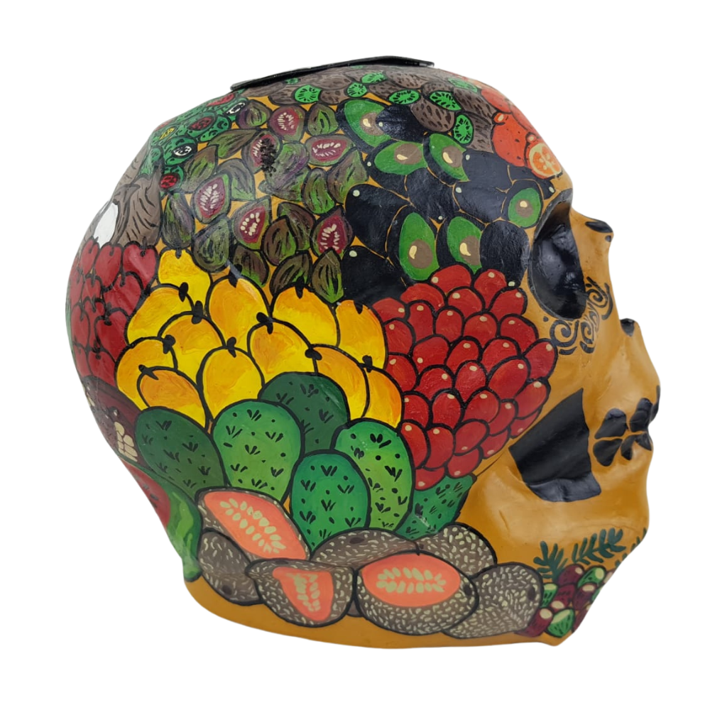 Cráneo original elaborado en papel maché por Mely Aguayo en Guadalajara, Jalisco.