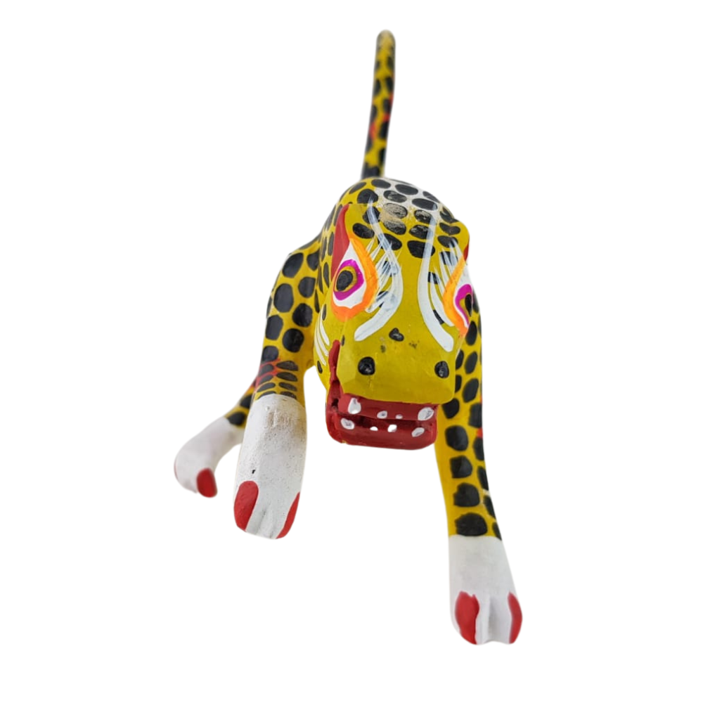 Alebrije oaxaqueño mediano, con forma de jaguar, de madera de copal
