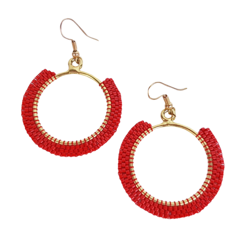 Hermosas arracadas elaboradas a mano con piedritas cilíndricas de cristal de origen japonés conocidas como miyuki. Aunque las piedritas de cristal no son mexicanas, el trabajo sí lo es, pues lo realiza Epifanía Vega, artesana de origen oaxaqueño radicada en Guadalajara, Jalisco.