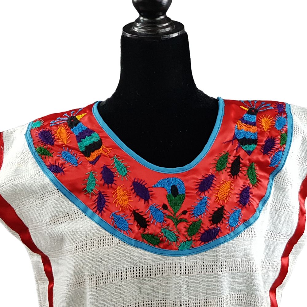 Hermoso huipil corto elaborado por el colectivo de artesanas que dirige la diseñadora y artesana Mónica Nambo en Santa María Huazolotitlán, Oaxaca. Este huipil fue tejido a mano en el telar de cintura, la textura de la tela es calada, por lo que el vestido es fresco.