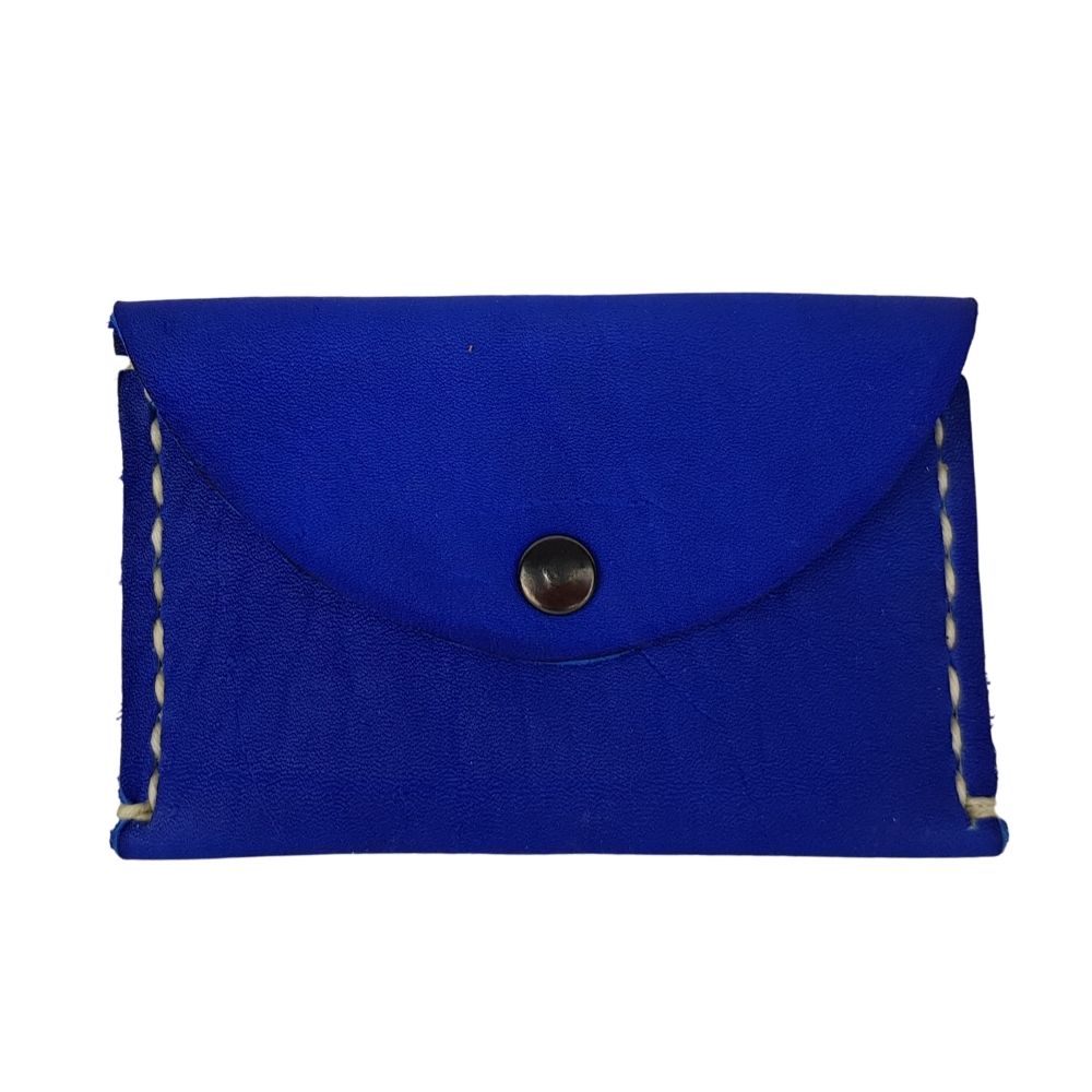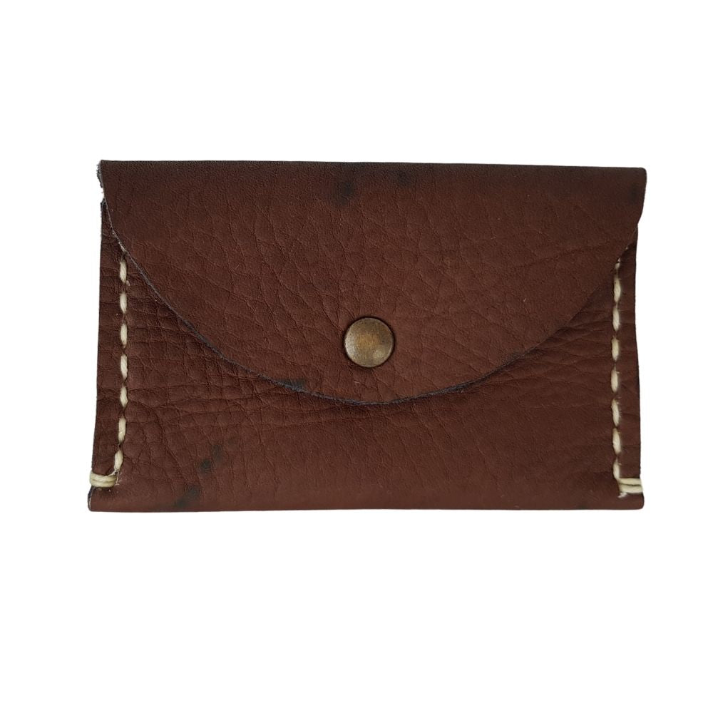 Tarjetero de piel costurado a mano, tipo sobre con botón