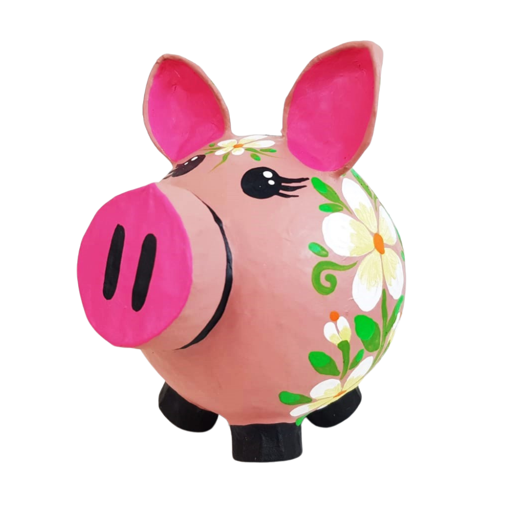 Cerditos alcancía de papel maché, pintados a mano