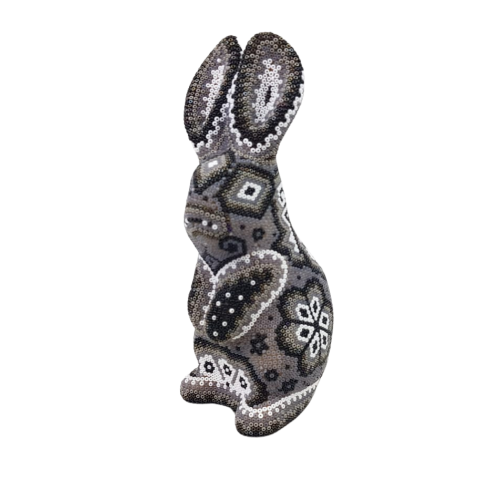 Conejo sentado, hecho de papel maché con motivos Wixárica