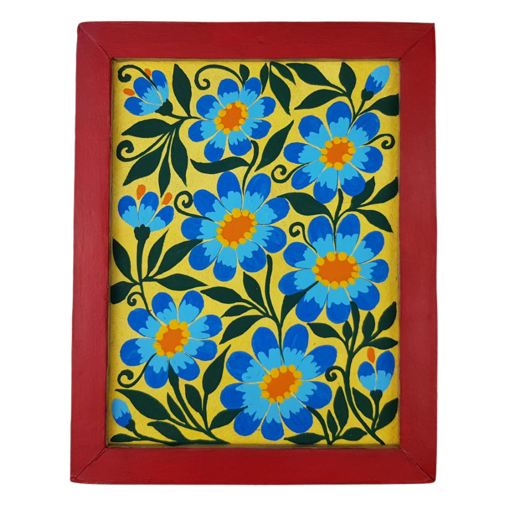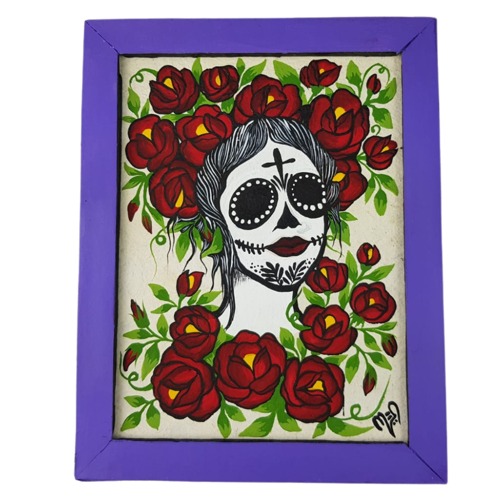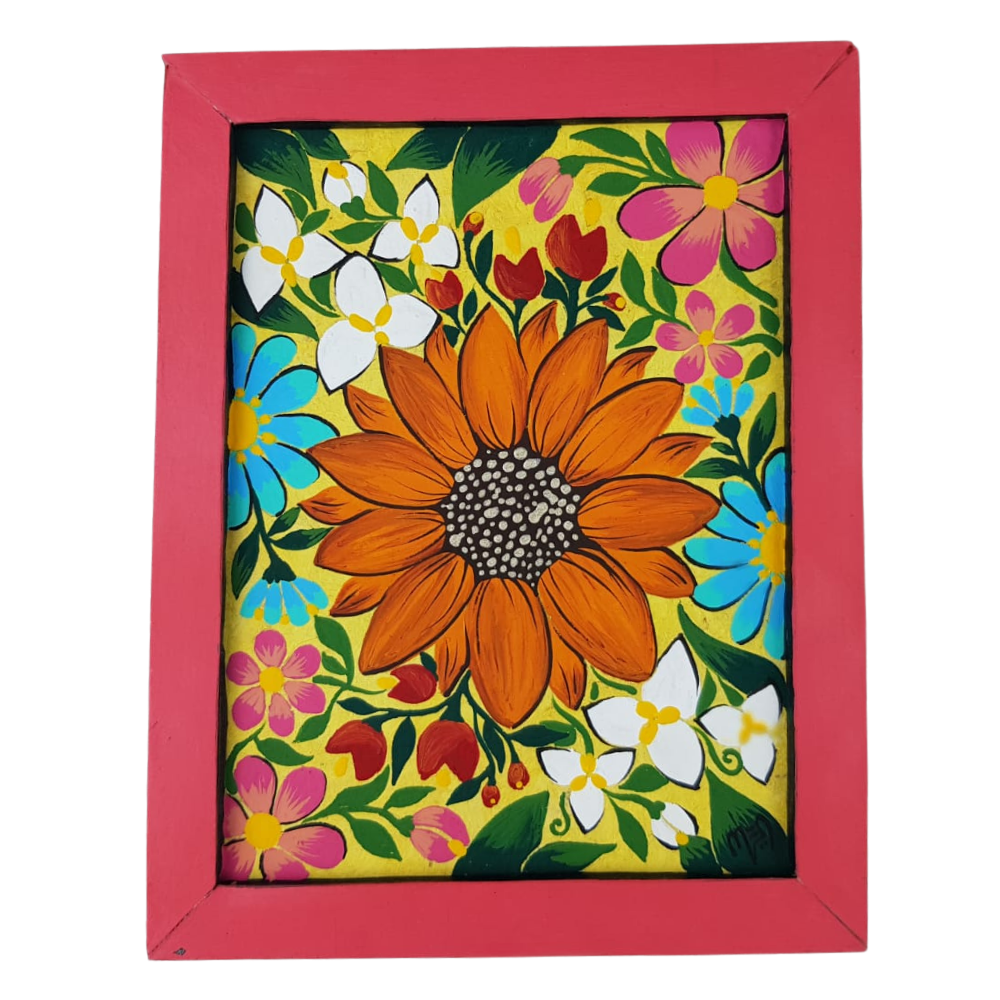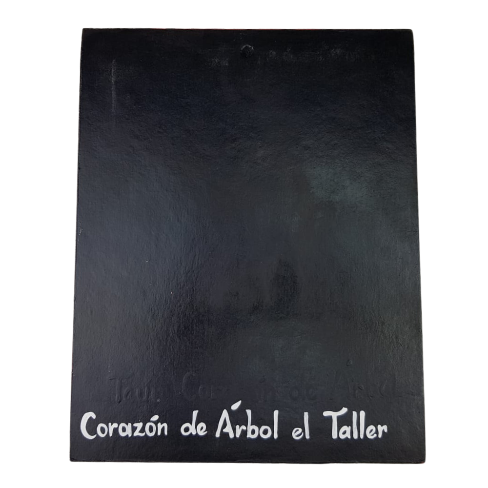 Cuadro decorativo hecho de papel maché, elaborado y pintado a mano, por la artesana Mely Aguayo en Guadalajara, Jalisco . Una artesanía ideal para decorar tus espacios, o como obsequio muy mexicano y pintoresco.