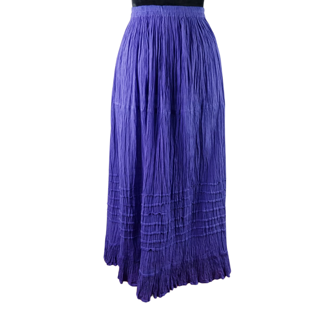Esta falda está elaborada con algodón, material natural e hipoalergénico, teñida artesanalmente. La manta es térmica, lo cual favorece la temperatura corporal. El diseño de la falda es combinable con diferentes tipos de blusas, al igual que sus colores.