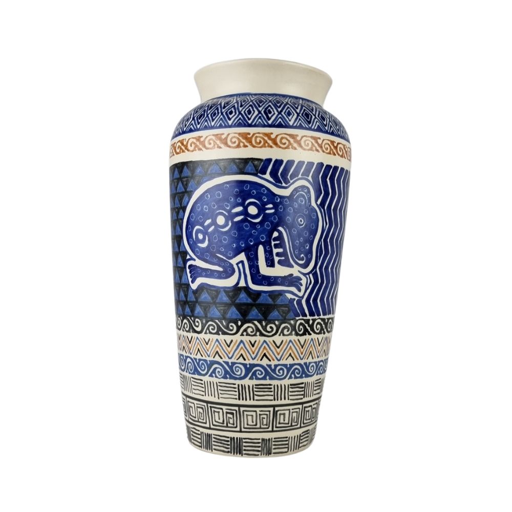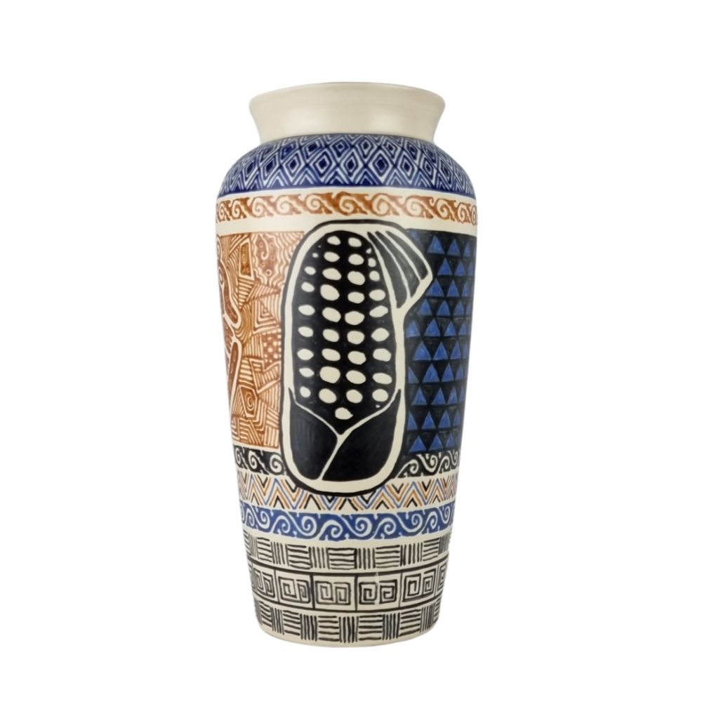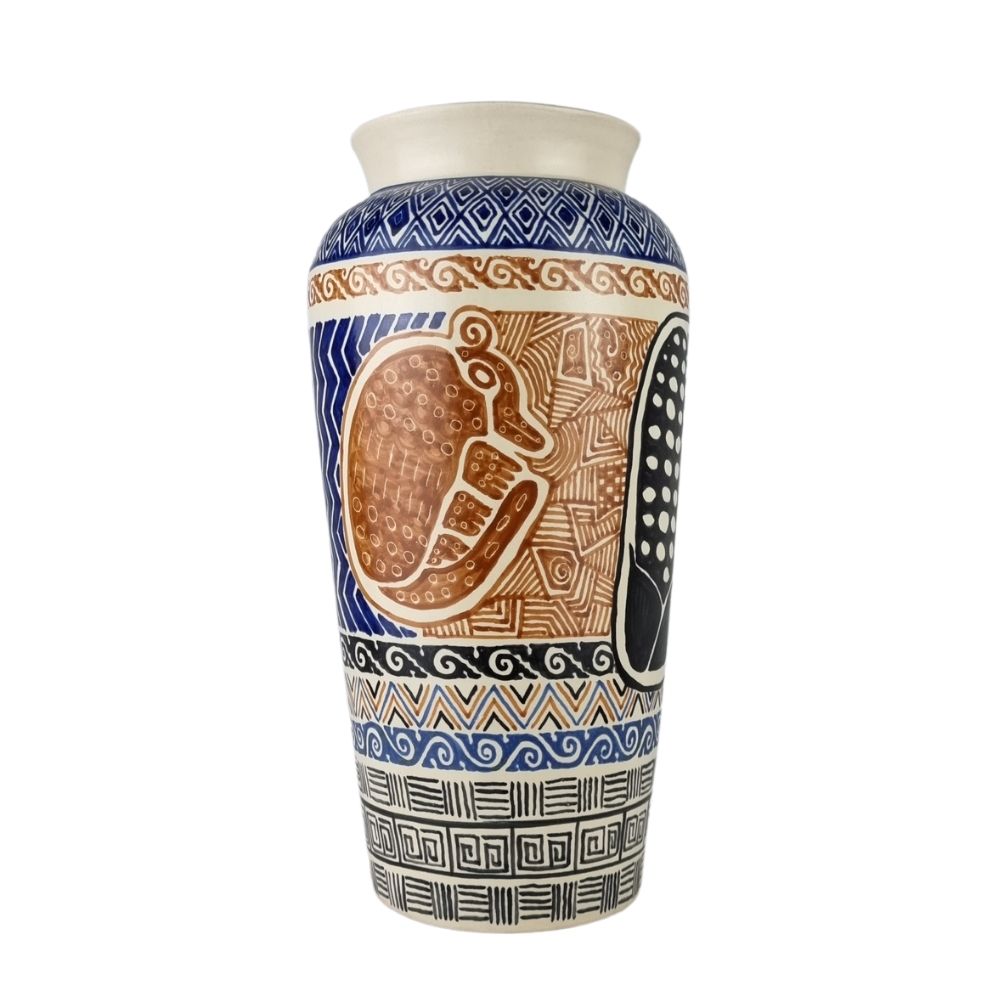 Hermoso florero de cerámica de alta temperatura elaborado por el maestro Francisco Cuiriz y su familia en Tzintzúntzan Michoacán.