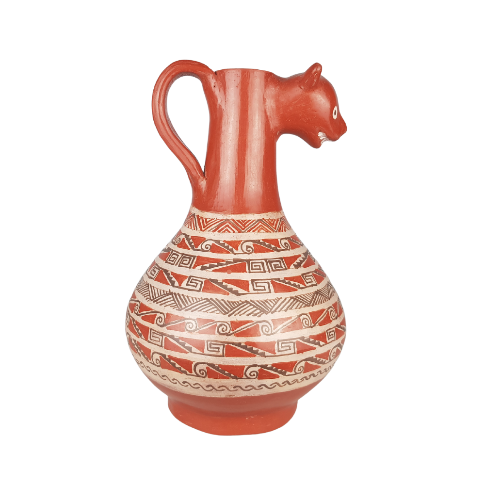 Jarra de barro bruñido decorada a mano