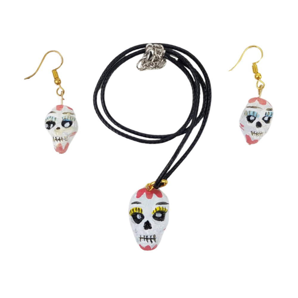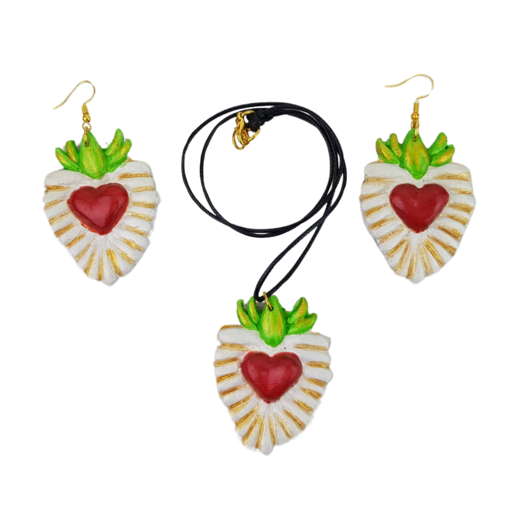 Juego de bisutería elaborado con la famosa técnica de barro betus, por Silvia en Tonalá, Jalisco. Estas figuras son moldeadas a mano y en ocasiones puedes tener algunos elementos hechos de su acabado con ayuda de moldes.