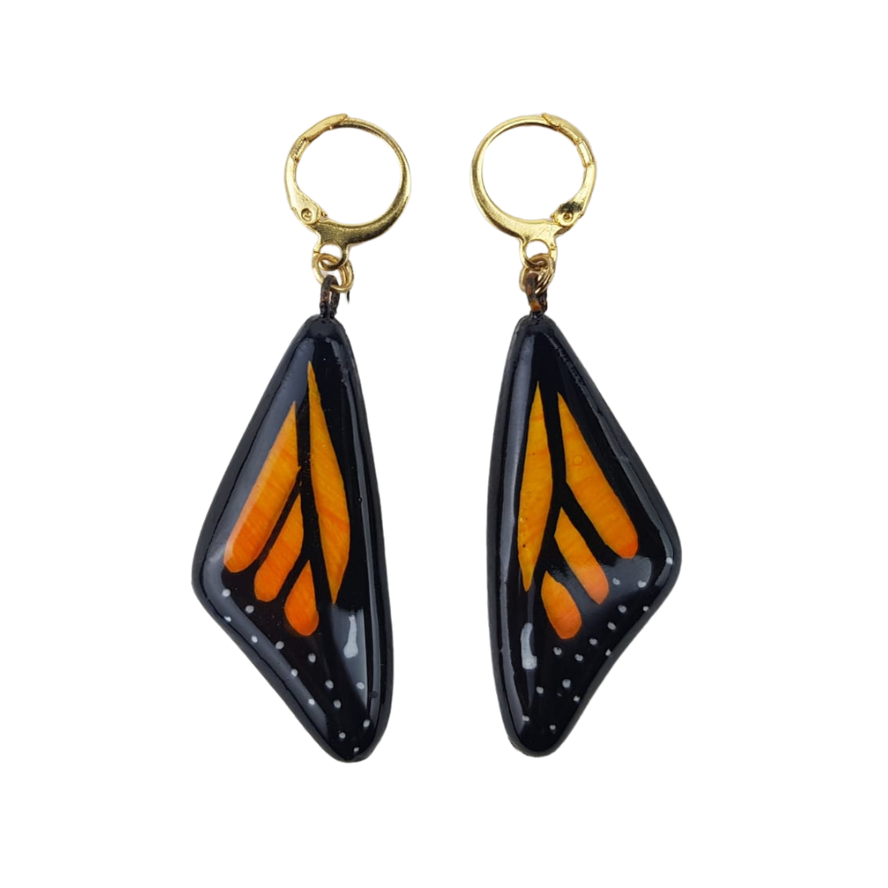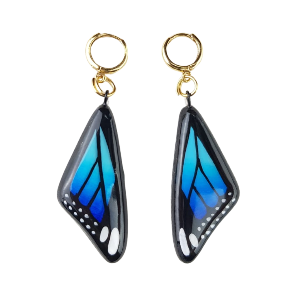 Juego de bisutería de barro policromado con forma de mariposa monarca, y azul
