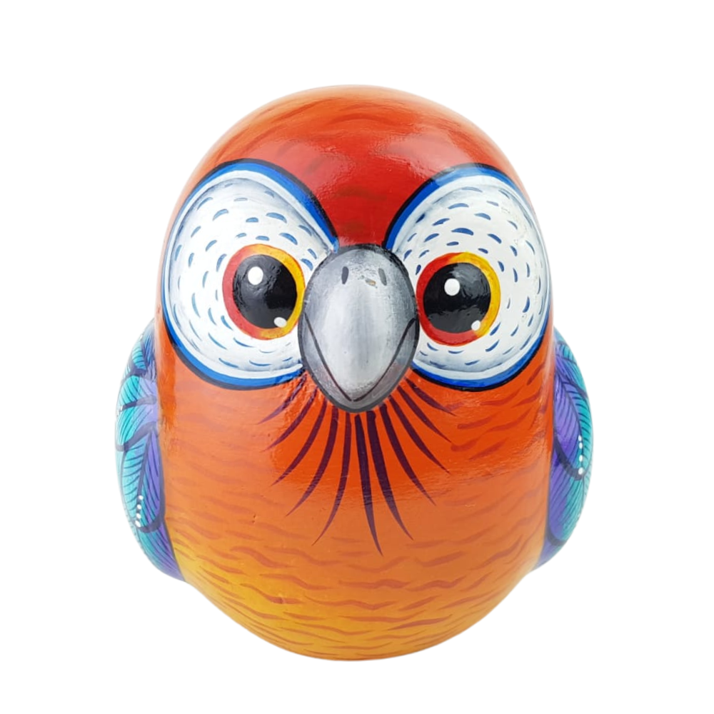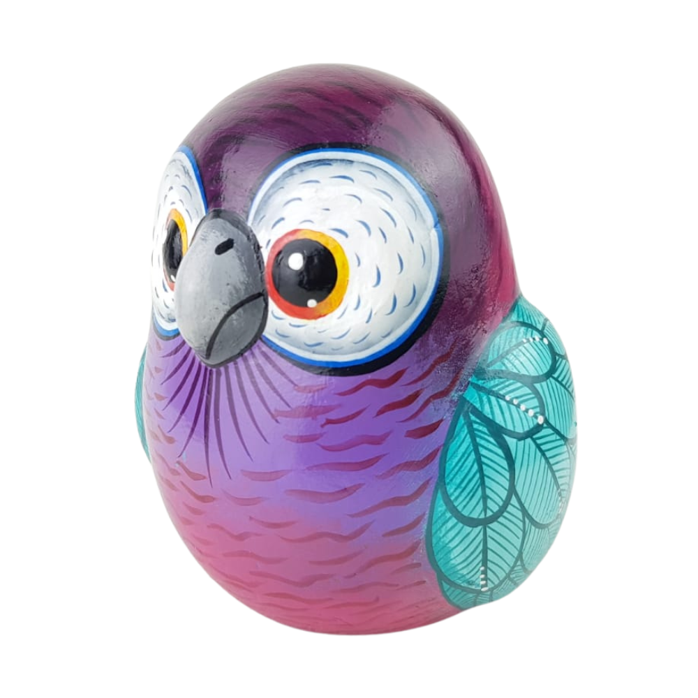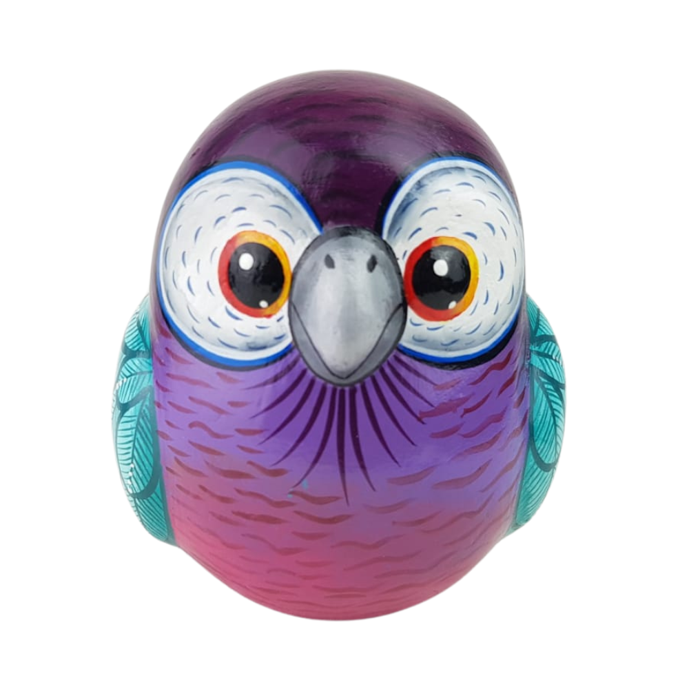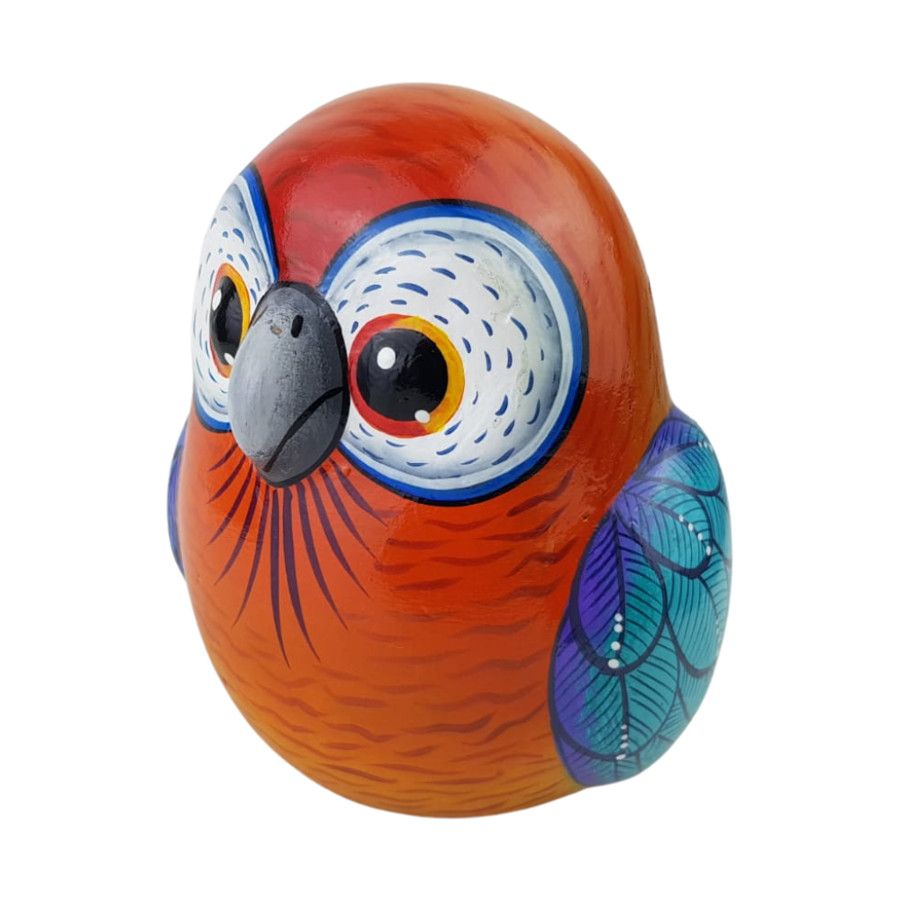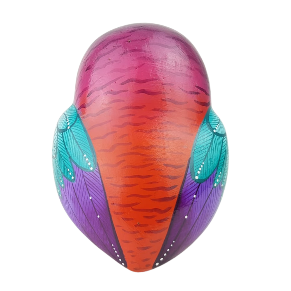Figura decorativa con forma de lechuza. Esta bella artesanía fue elaborada empleando la técnica de barro policromado, combinando colores vivos con detalles minuciosos que les dan un toque lindo y exquisito.
