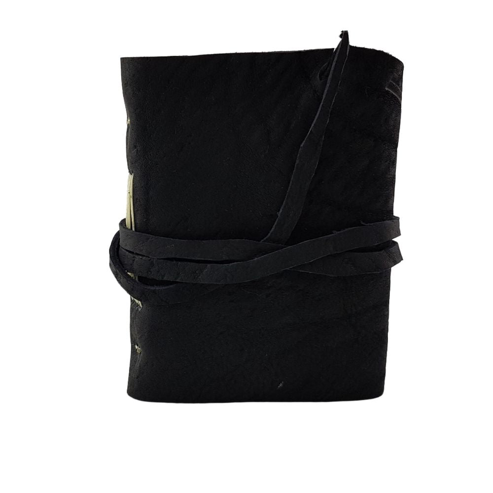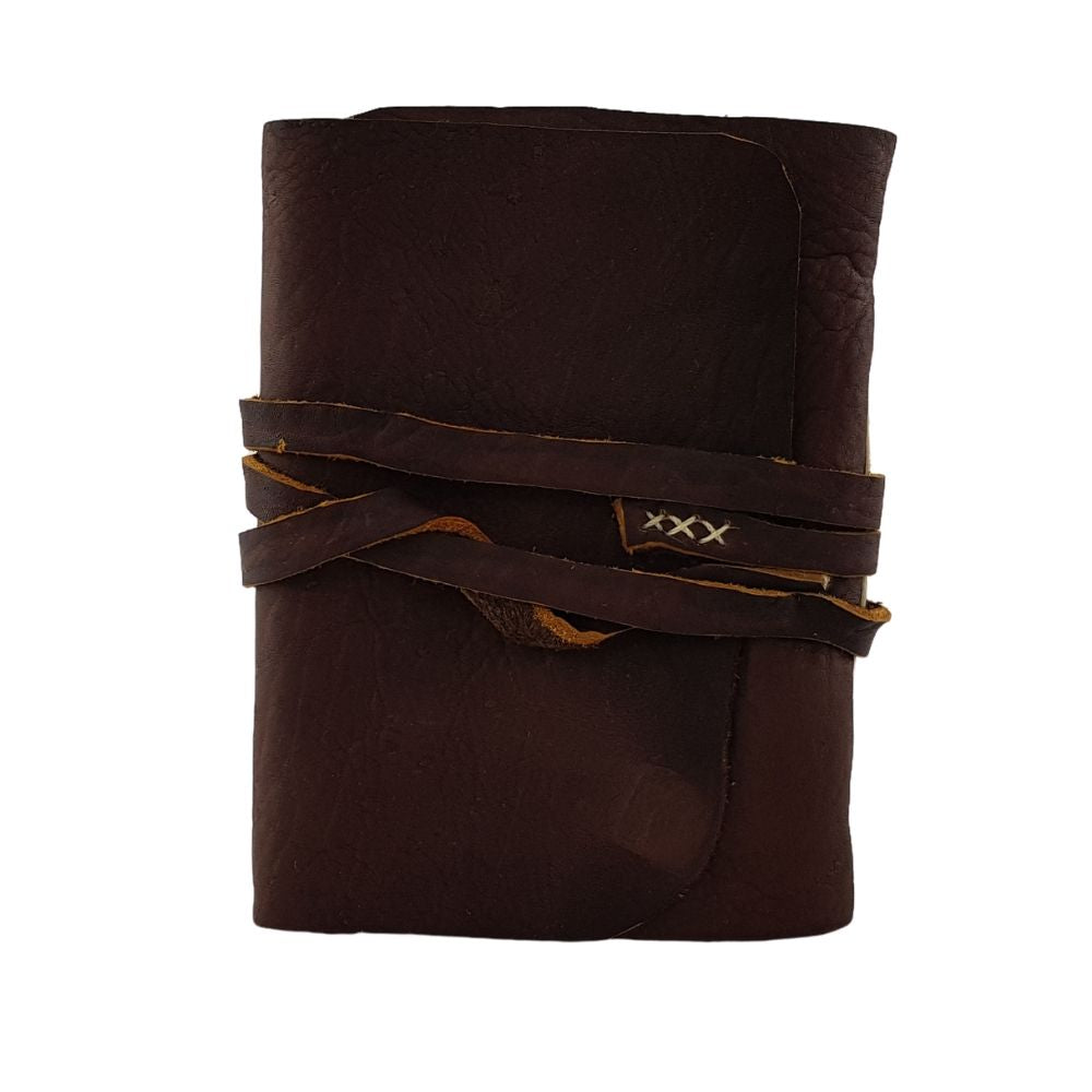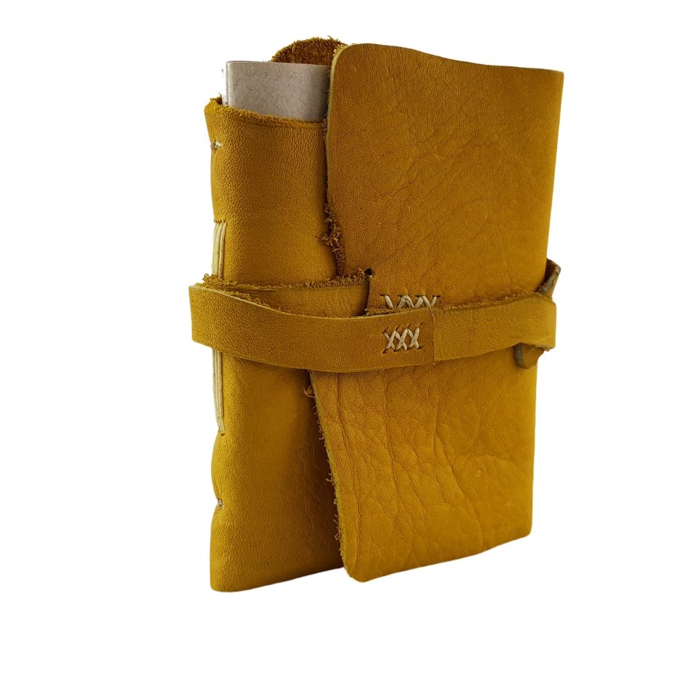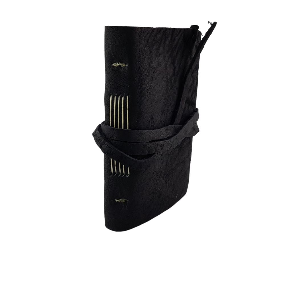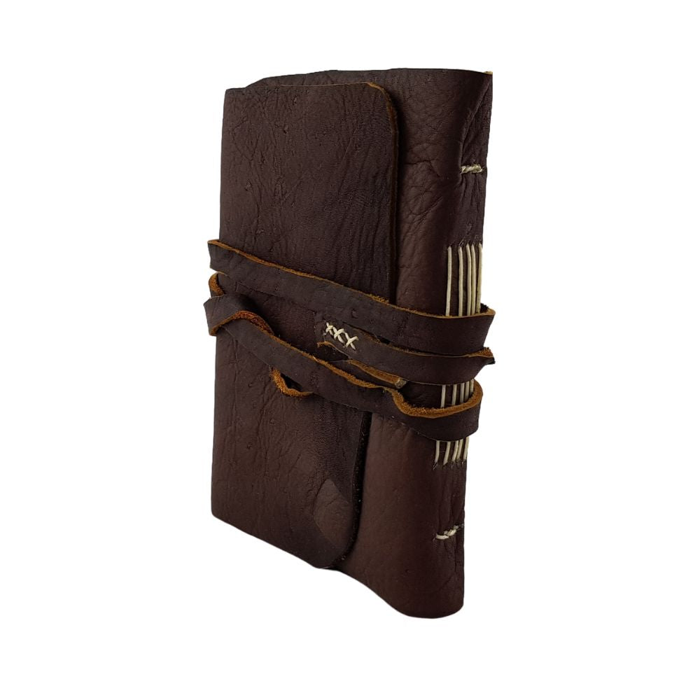 Libreta con hojas de papel reciclado y forro de piel costurada a mano