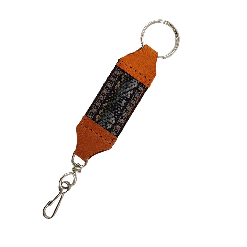Llavero de piel con textil decorado con motivos Oaxaqueños