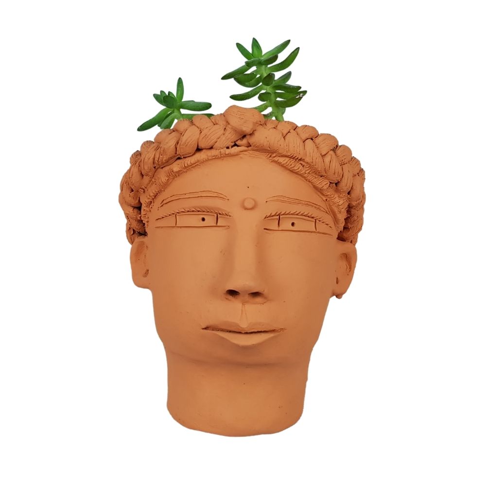 Maceta Teresita, rostro de mujer con trenza tamaño chico