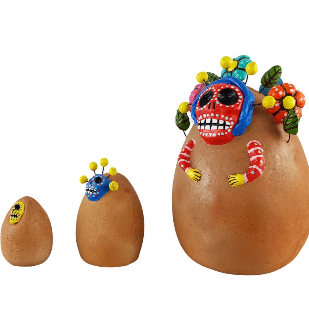 Muñeca matruska mexicana de tres piezas elaborada en barro policromado frío