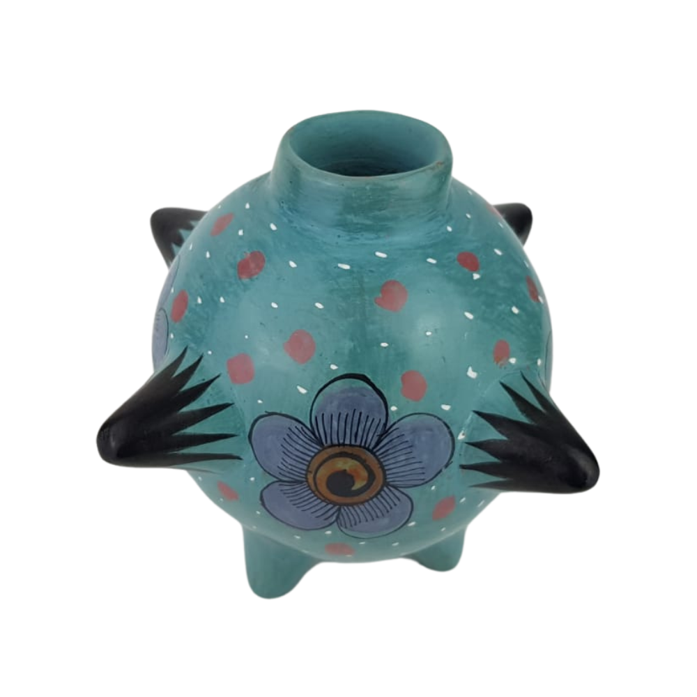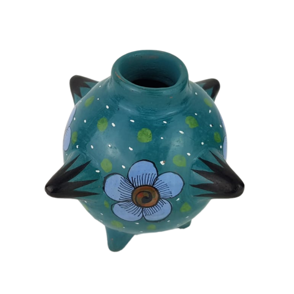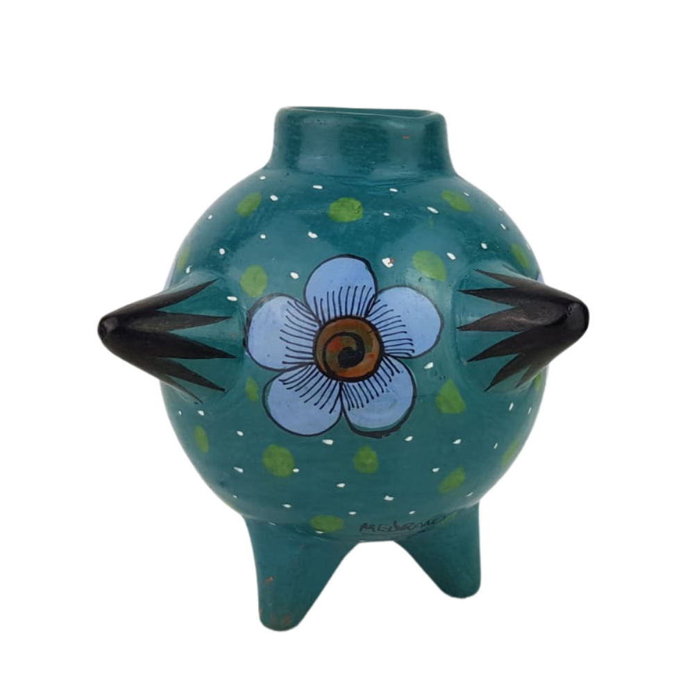Esta linda pieza además de tener un decorado y técnica exquisitos y detallados que lucirán muy bien en el lugar de tu preferencia, puede ser utilizada como porta velas. Le dará un toque pintoresco y mexicano a tu decoración. Cada pieza está firmada por el artesano.