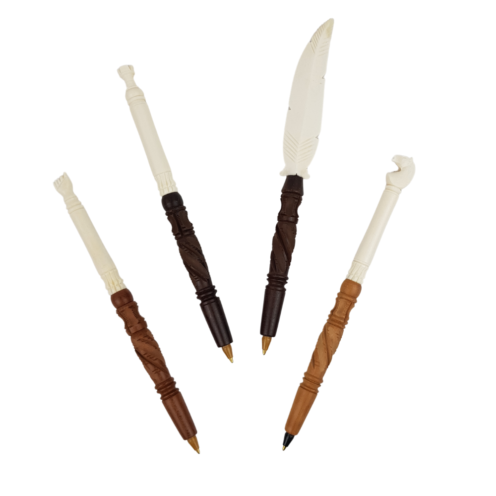 Pluma de madera con hueso de ganado tallado a mano en torno