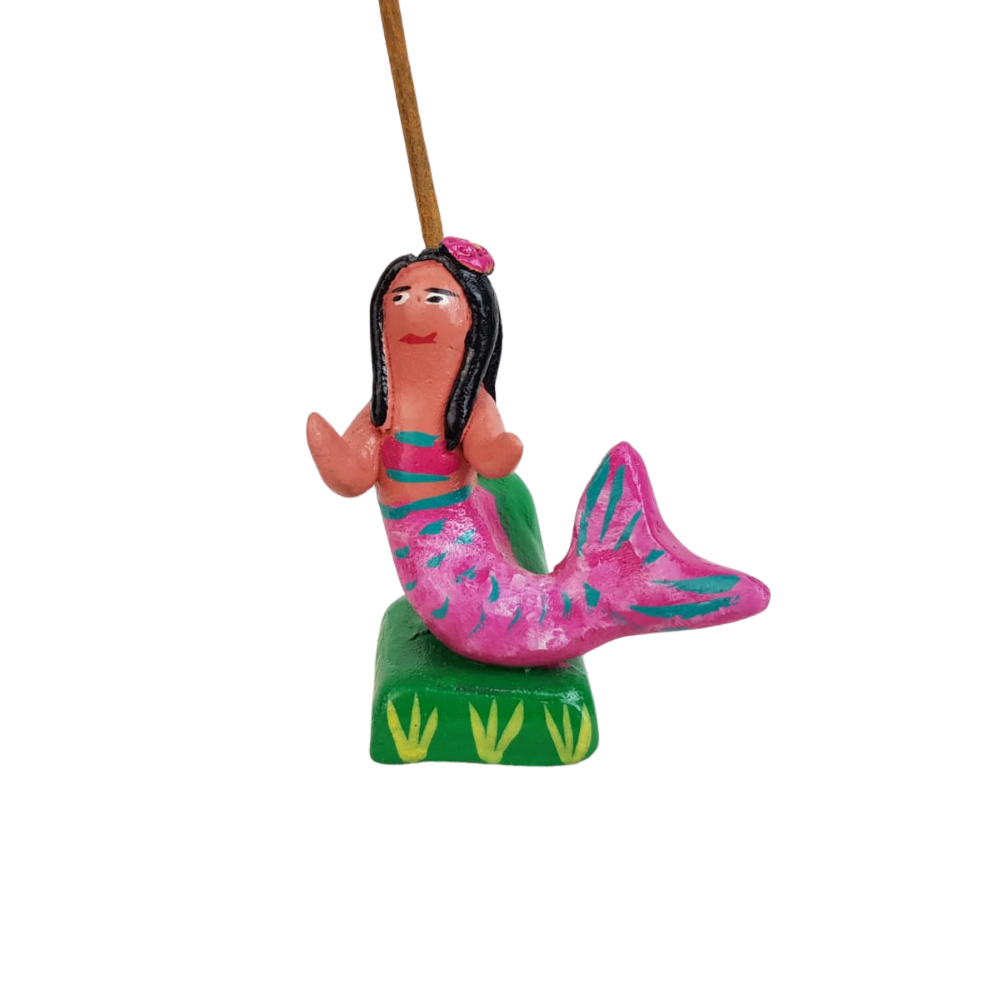 Porta incienso, figura surrealista de arte popular mexicano elaborada con barro betus