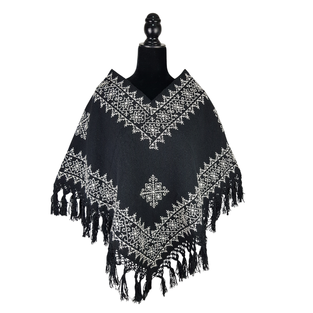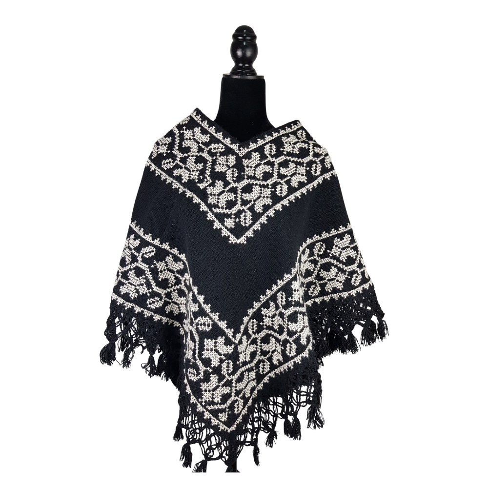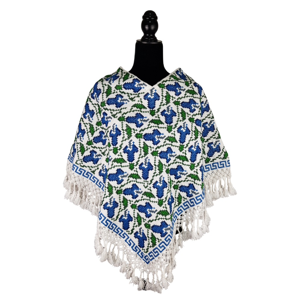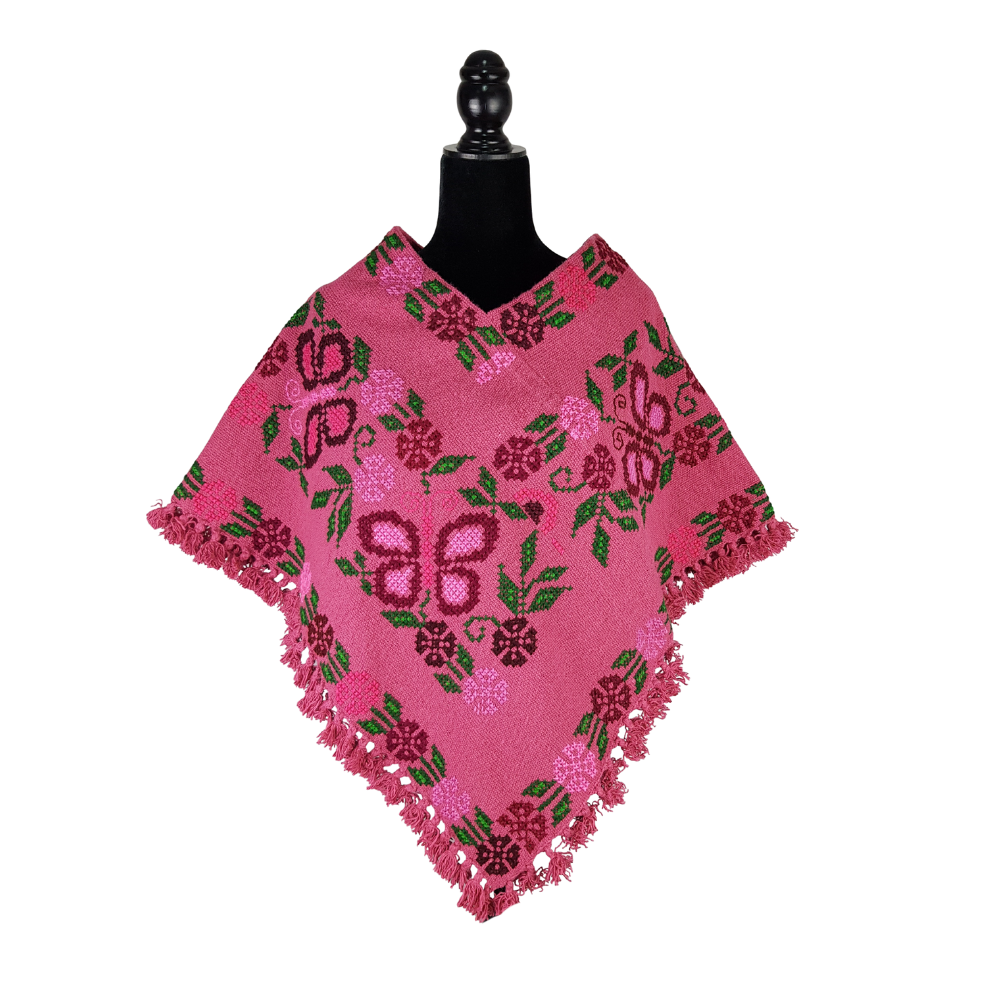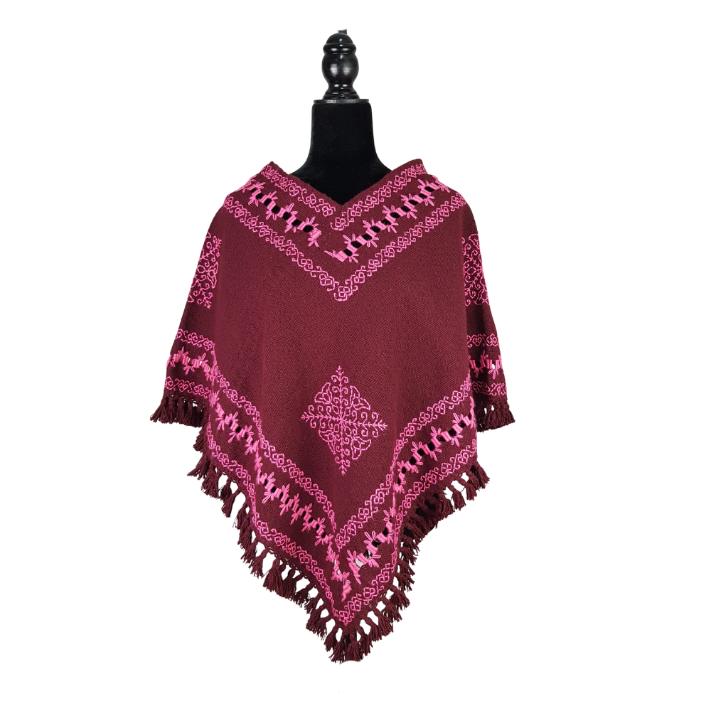 Quexquémetl, capita mediana de acrilán con bordado en punto de cruz o puntada antigua