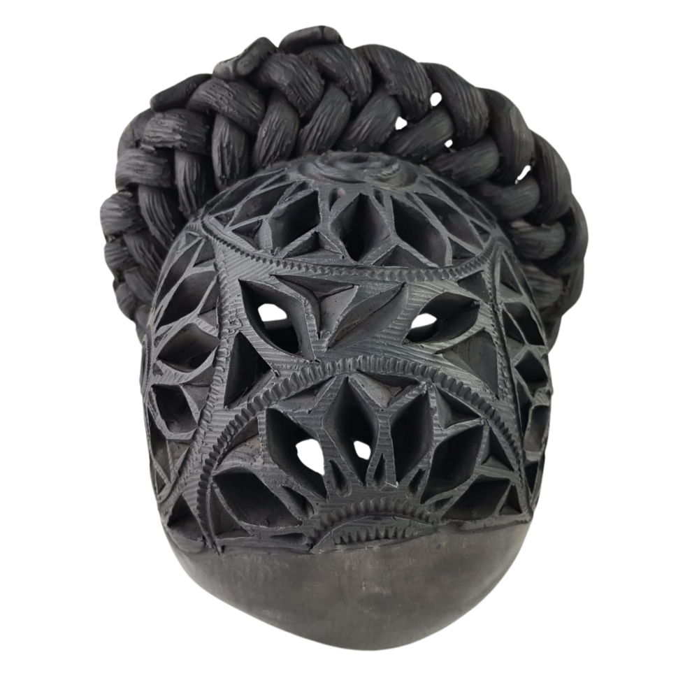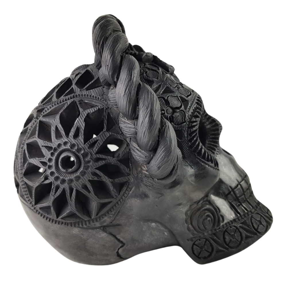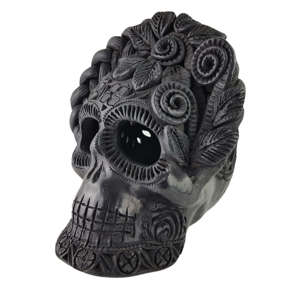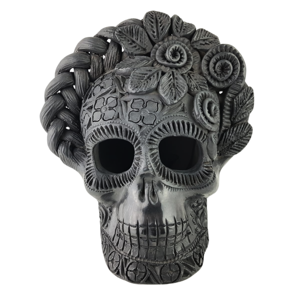 Cráneo Frida de barro negro hecho en Oaxaca