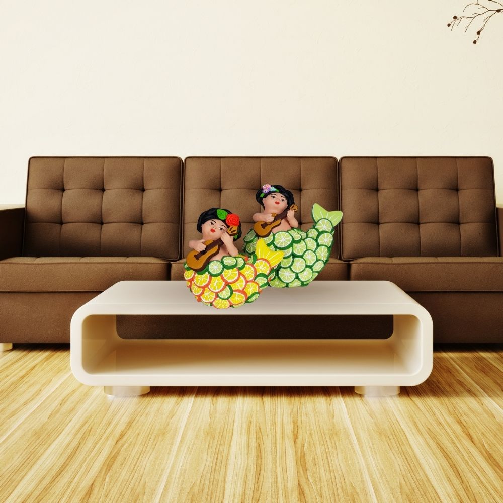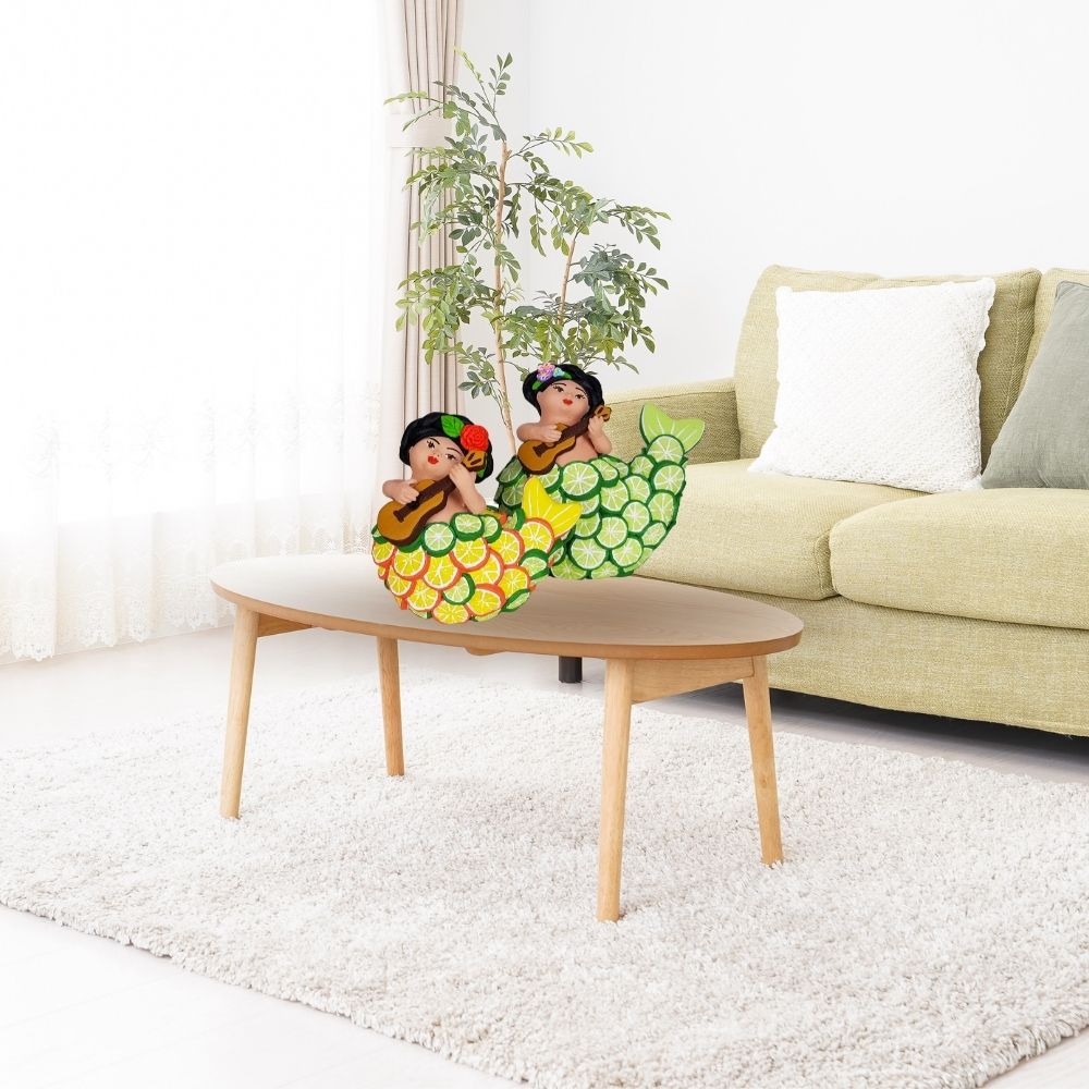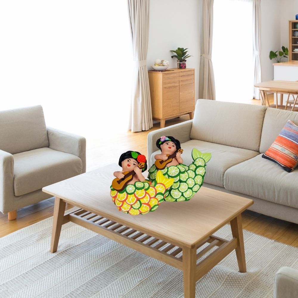 Sirena mexicana con escamas de limón, figura de barro de Tlaquepaque Jalisco