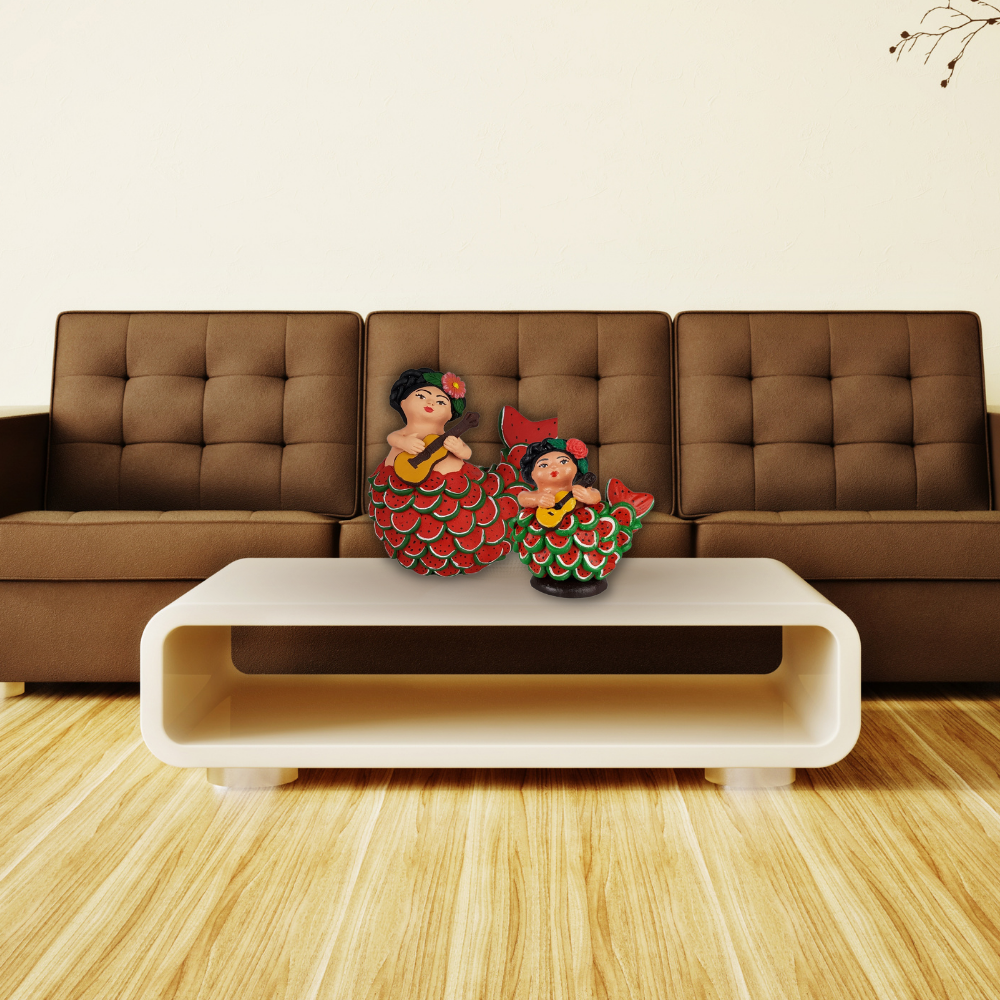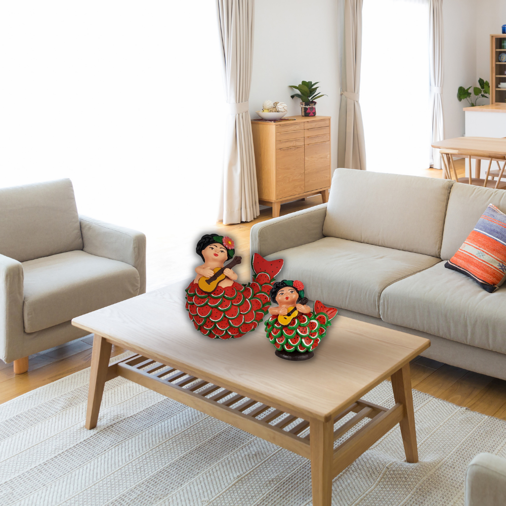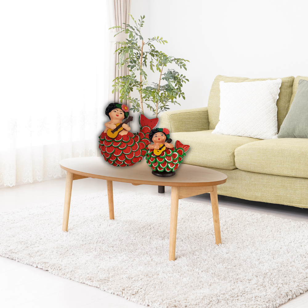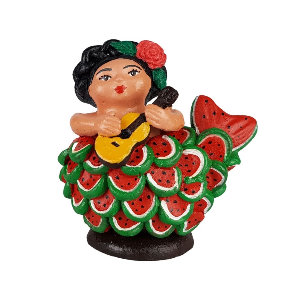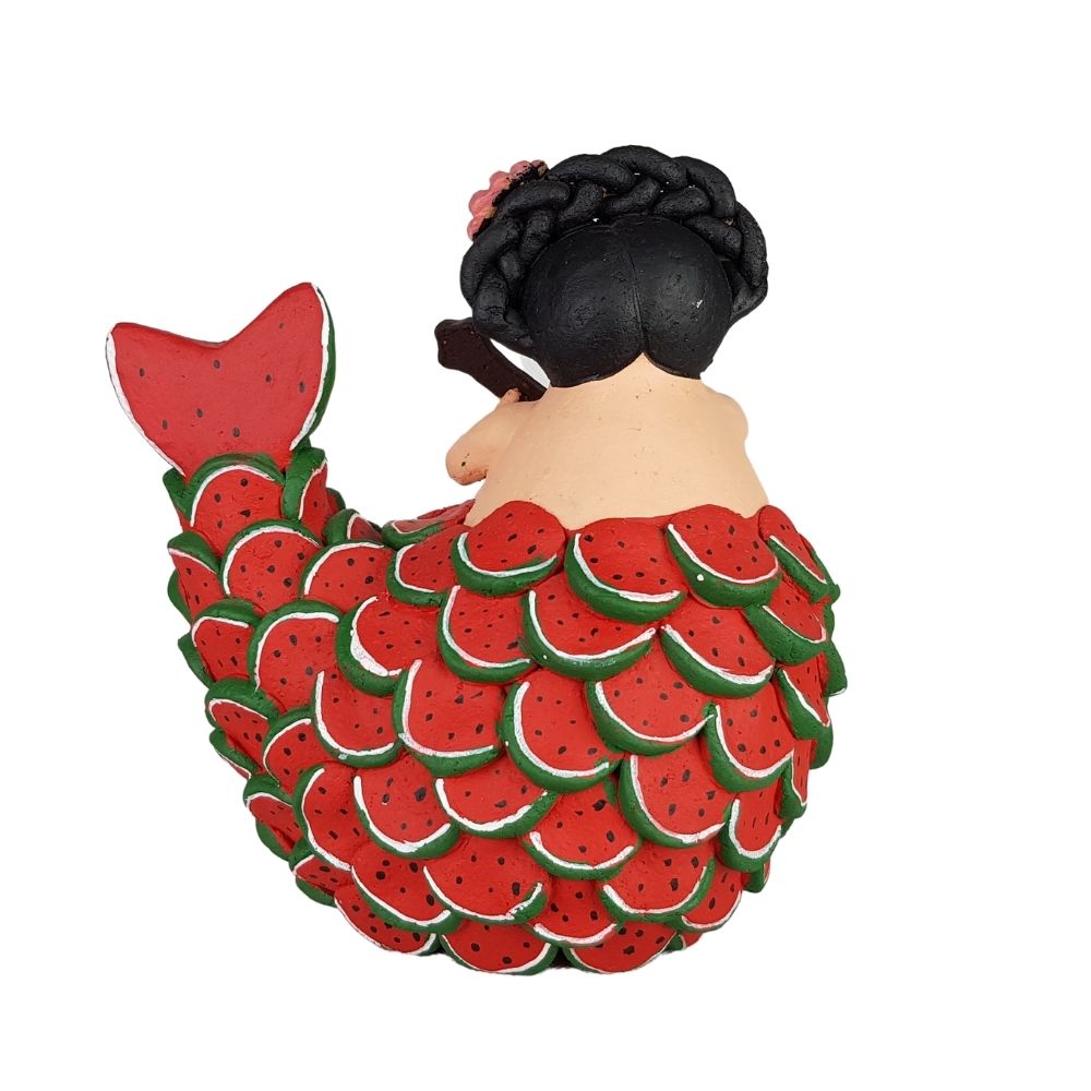 Sirena mexicana con escamas de sandía, figura de barro de Tlaquepaque Jalisco