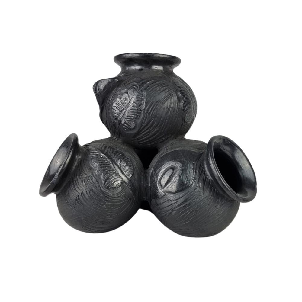 Original torre de ollas de barro negro elaborada en Valles Centrales de Oaxaca por Siria Cruz.